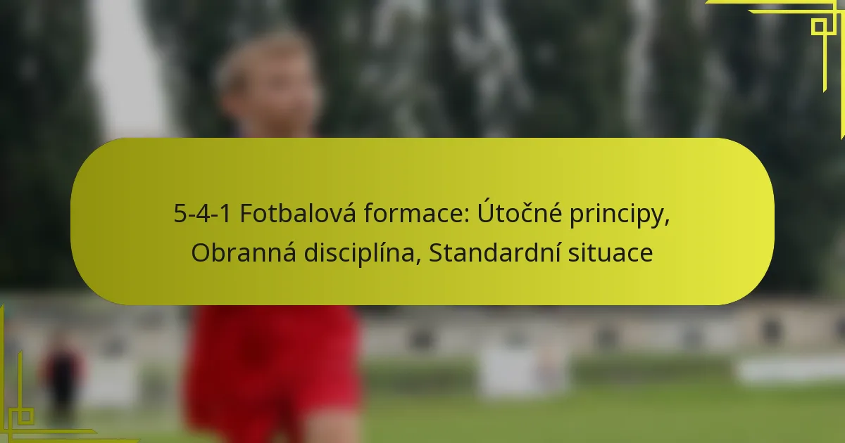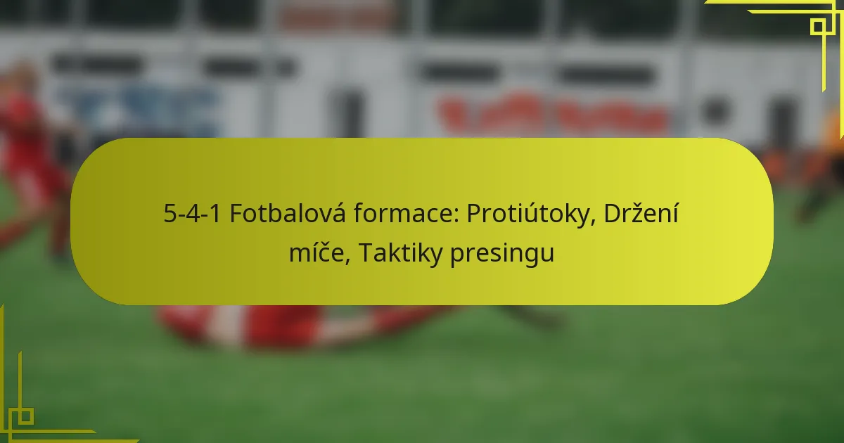 Formace 5-4-1 zdůrazňuje silnou defenzivní strukturu, zatímco umožňuje rychlé přechody do útoku. Toto uspořádání obvykle zahrnuje pět obránců, čtyři záložníky a jednoho útočníka, vytvářející kompaktní jednotku, která může absorbovat tlak a využívat příležitosti k protiútokům.