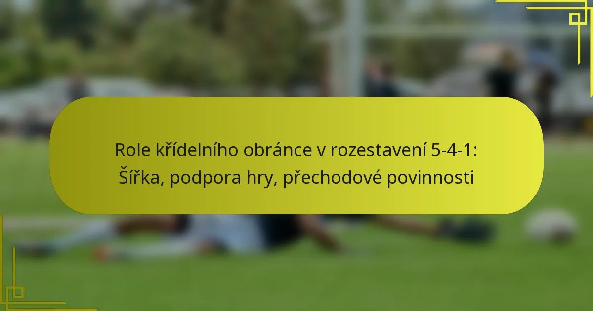 V fotbalové formaci 5-4-1 mají hráči specifické role, které přispívají jak k defenzivní stabilitě, tak k útočným příležitostem. Toto uspořádání obvykle zahrnuje pět obránců, čtyři záložníky a jednoho útočníka, přičemž každý má odlišné odpovědnosti, které zvyšují výkon týmu.