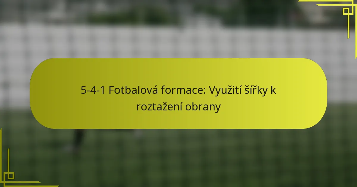 Formace 5-4-1 je taktická sestava ve fotbale, která upřednostňuje obrannou sílu a zároveň umožňuje rychlé protiútoky. Použitím pěti obránců a…